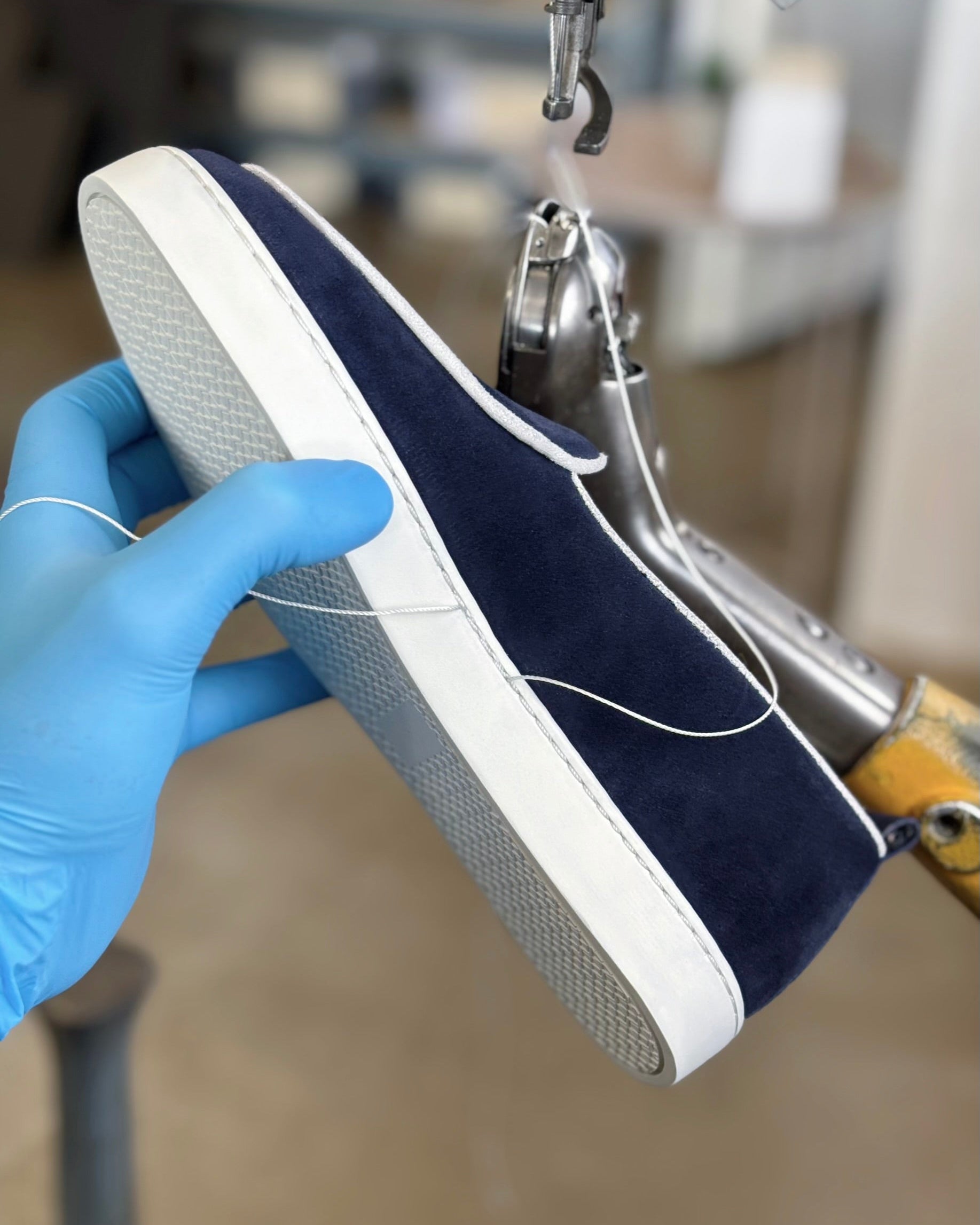 Alle unsere Schuhe werden auf Bestellung produziert. Nach deiner Bestellung wird der Schuh speziell für Dich handgefertigt und innerhalb von ca. 30 Werktagen an Deine Adresse geliefert. Mit so einer Aufstellung reduzieren wir Abfall and schonen die Umwelt.